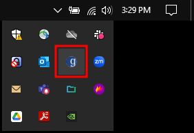 After installation locate your MacOS notification, generally at the top-right of your display. In it you should see a white lowercase letter "g" in a fille black circle.